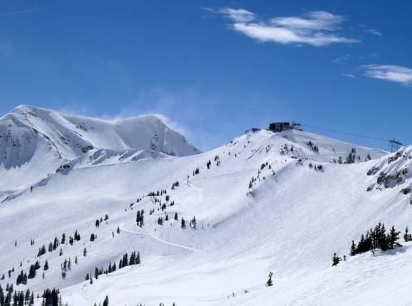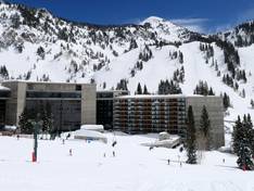 Skigebied Snowbird in Little Cottonwood… Uitzicht vanaf de Hidden Peak op de agglomeratie… Skigebied Snowbird met Aerial Tram