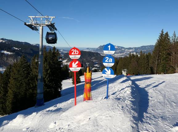 De bewegwijzering op de pistes is duidelijk, eenduidig en uniform. Grote informatieborden met openingsstatus en infoschermen op belangrijke punten in het skigebied maken de oriëntatie eenvoudig. In alle skigebieden van de Bergbahnen Kleinwalsertal Oberstdorf vindt men uniforme bewegwijzering. Elk skigebied is met een eigen kleur gemarkeerd.