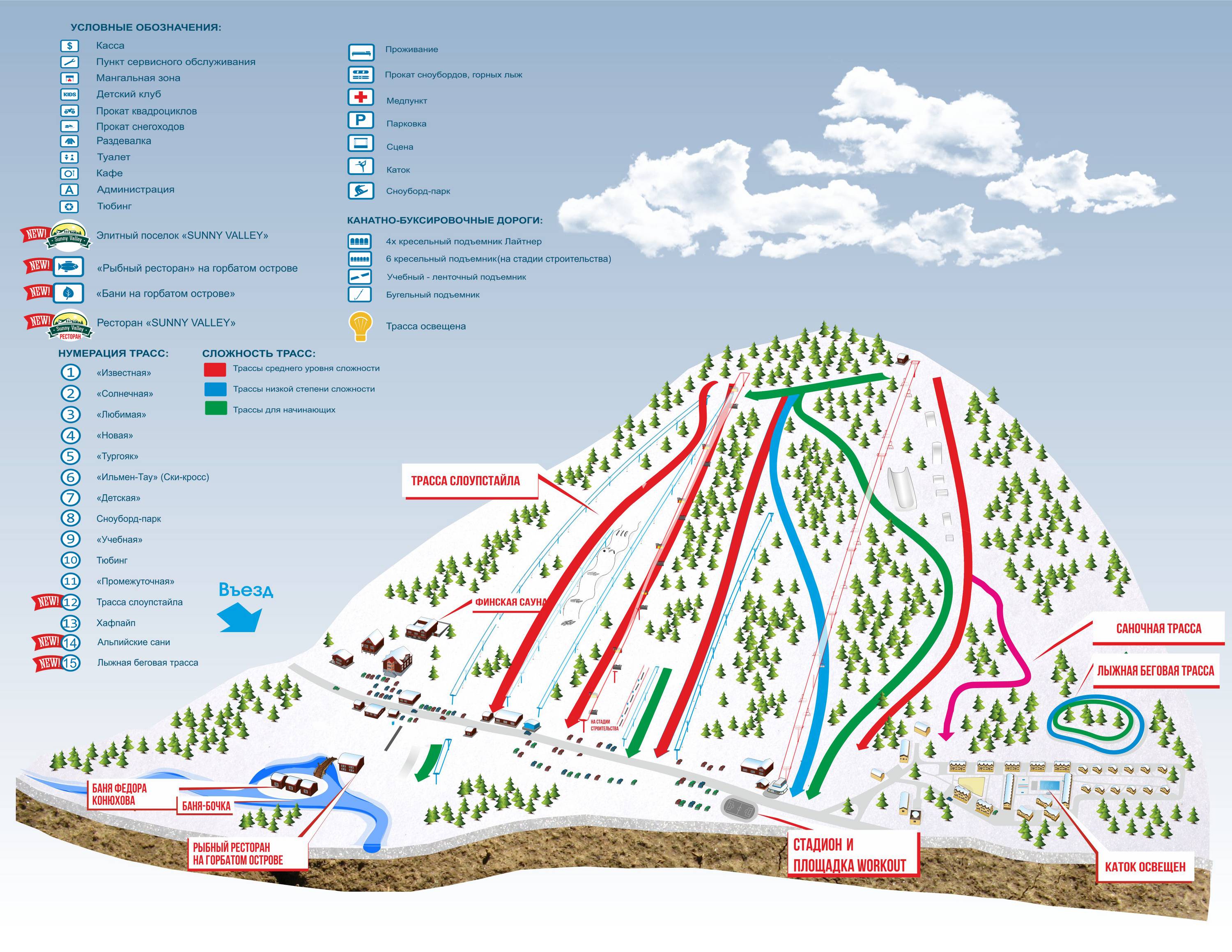 Pistekaart Solnechnaya Dolina (Sunny Valley)