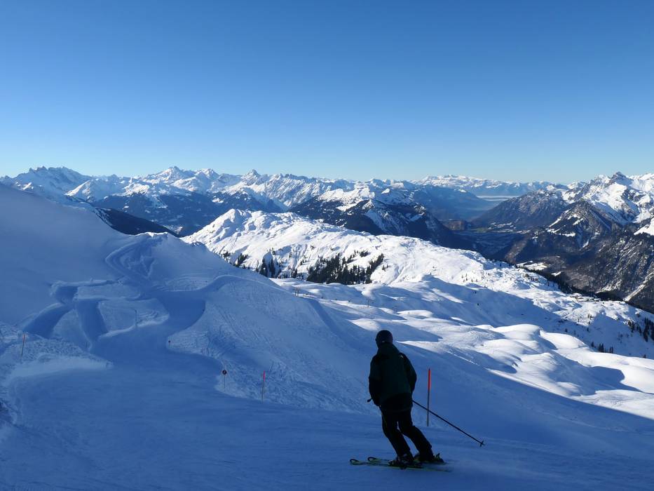 Prachtig panorama over het skigebied tot helemaal beneden in het Walgau - Afdaling Untermuri