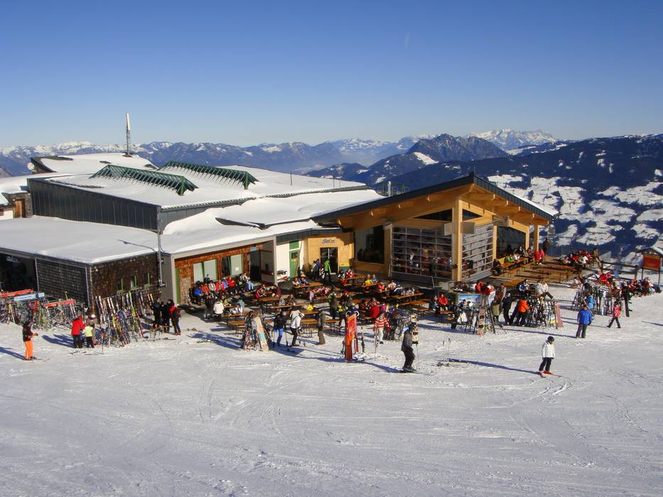 Uitbreiding van het bergstation van de gondel met restaurant Suntime. De glazen wand kan in zijn geheel worden opgetrokken. Ideaal voor de mooie dagen in maart en april.2008/2009