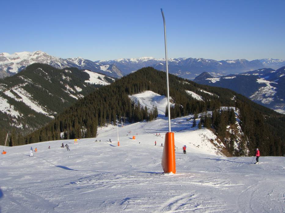 Uitbreiding van en sneeuwkanonnen plaatsen bij de langste dalafdaling in het Zillertal - de langste besneeuwde dalafdaling van het Zillertal is voltooid.2002/2003