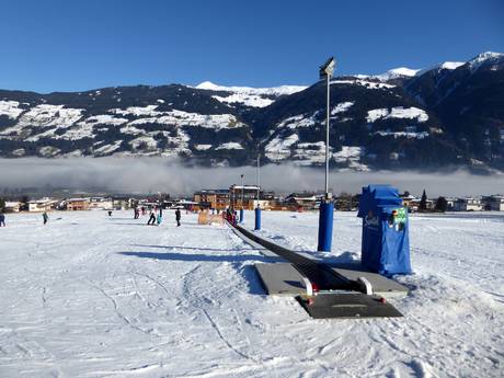Net onder het dalstation van de Spieljochbahn in het dorp Fügen ligt dit grote oefenterrein. Kinderen leren skiën op de lopende band. Verschillende skischolen oefenen met de kleintjes in het Kinderpark. Een golvenbaan maakt het aanbod compleet.