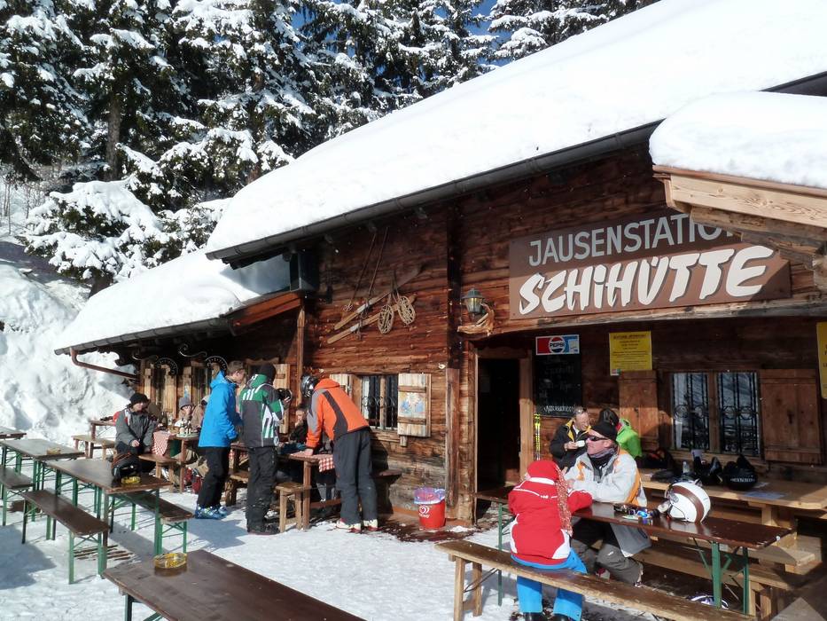 De Jausenstation Schihütte is een gezellige en authentieke hut met zonneterras. Ideaal voor een pauze tijdens het skiën.