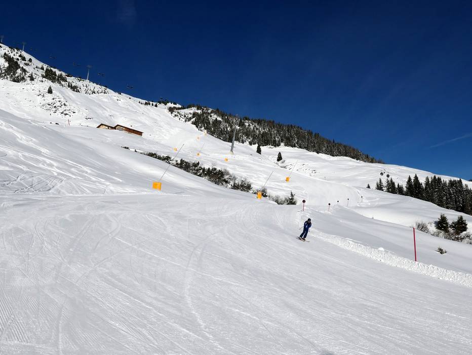Volledig besneeuwde, gevarieerde 7 km lange afdaling met mooie hellingen