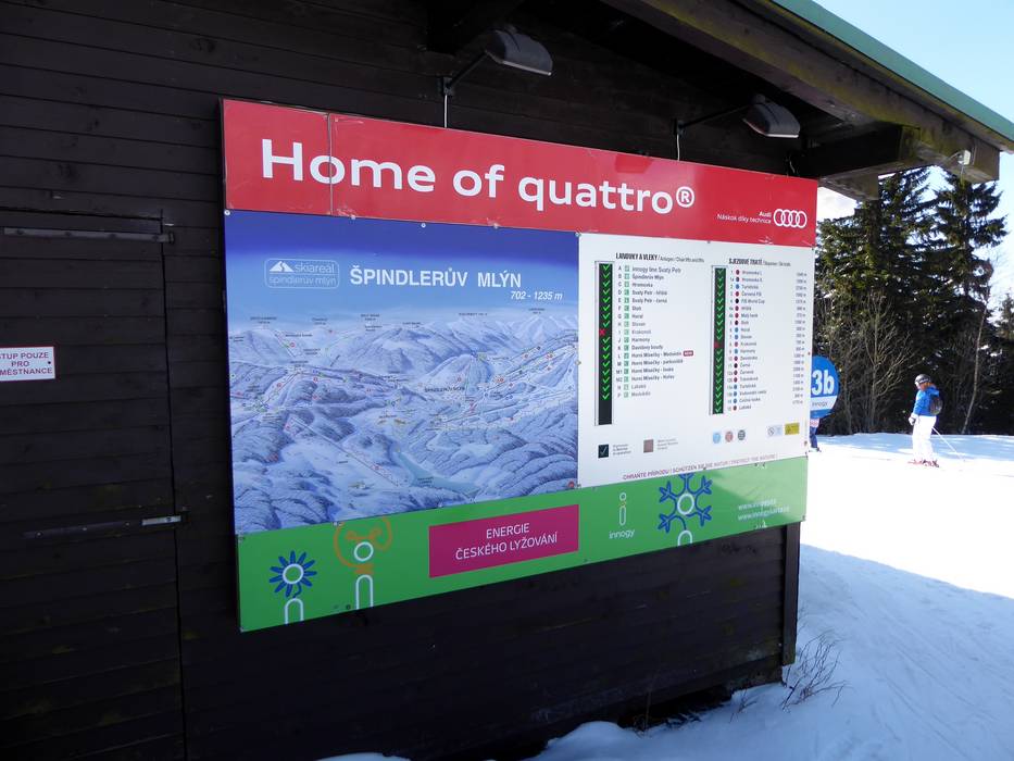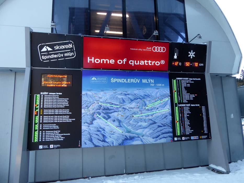Oriëntatie (pistekaart, informatieborden, bewegwijzering piste) en veiligheid in het skigebied Špindlerův Mlýn