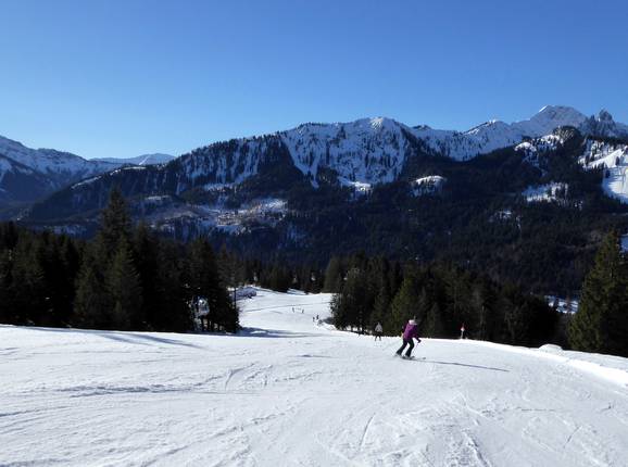 Grünsee-afdaling met zonneschijn Uitzicht op de Taubenstein Uitzicht op de Firstalmen met de Brecherspitz op…