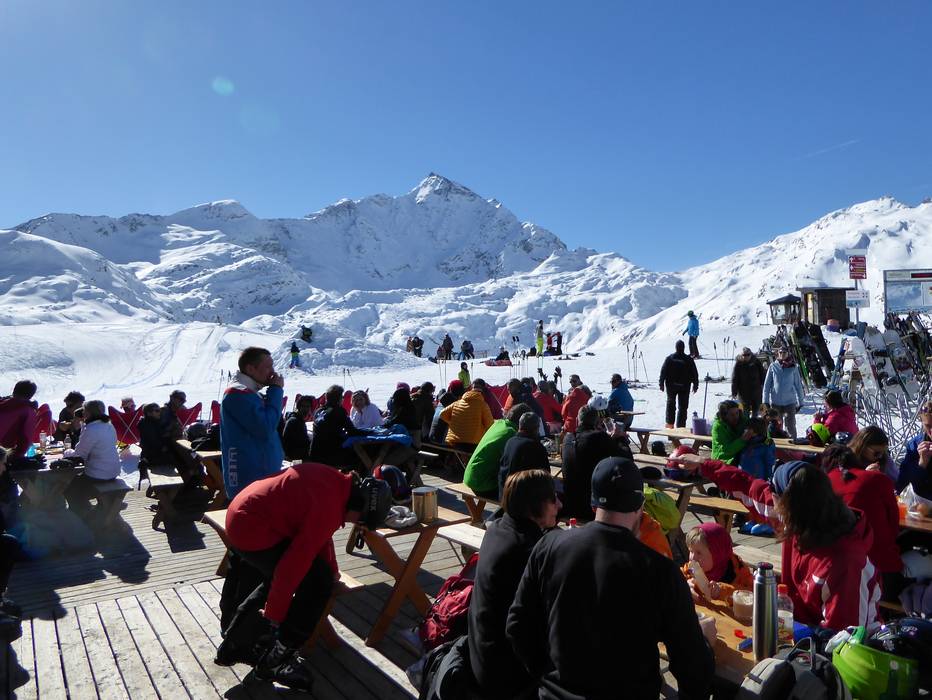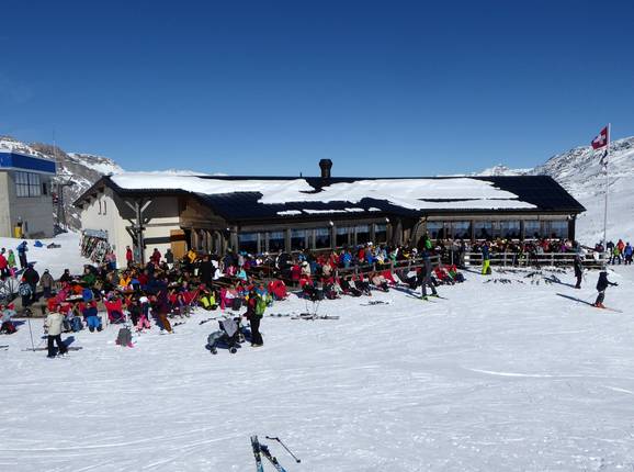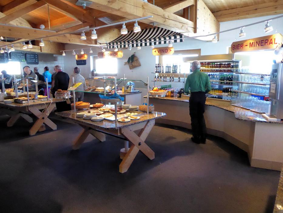 Het zelfbedieningsrestaurant ligt midden in de Tambo-bergwereld. Vanaf het grote zonneterras heb je een prachtig uitzicht op de Piz Tambo. Er wordt typisch skiërsvoedsel aangeboden.