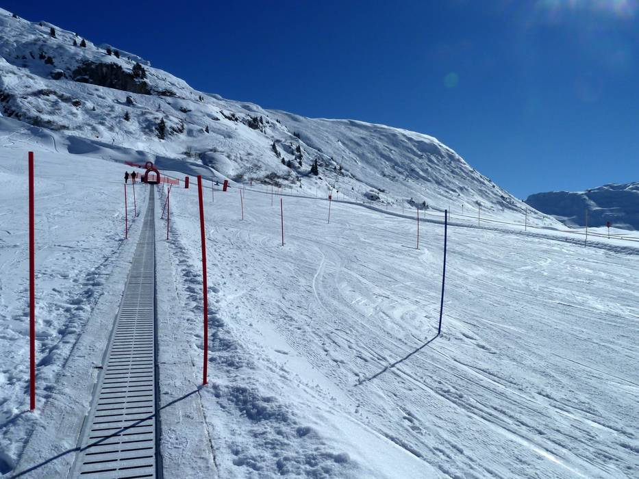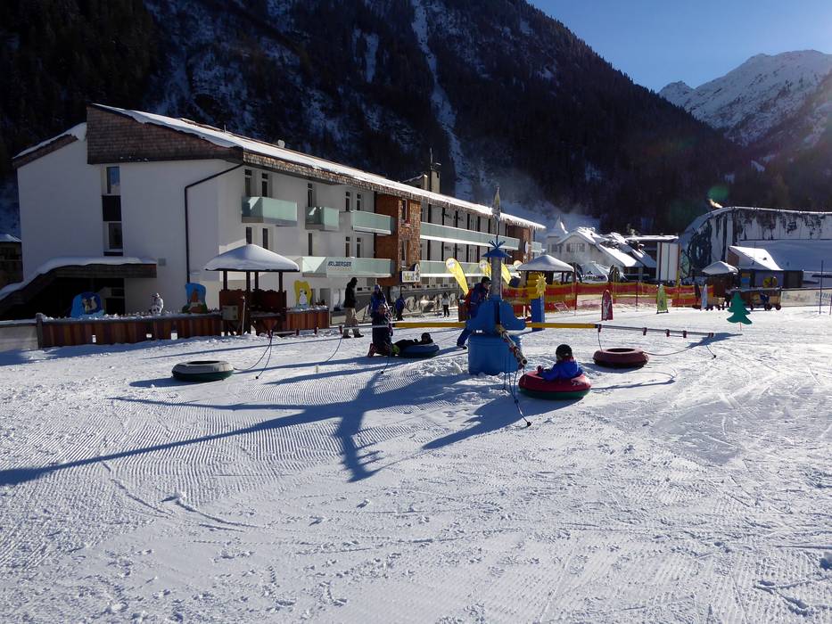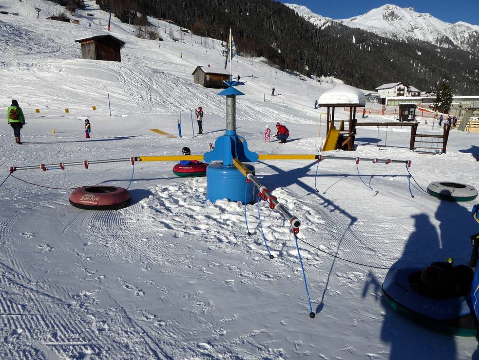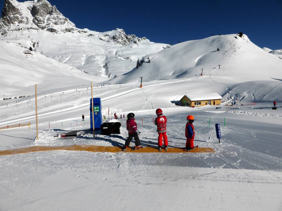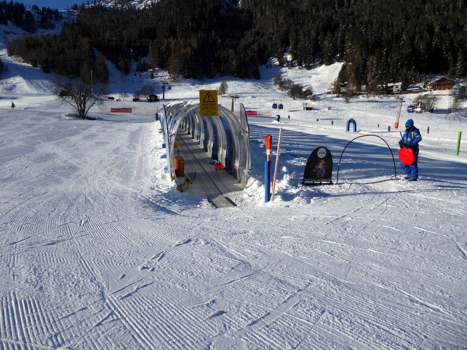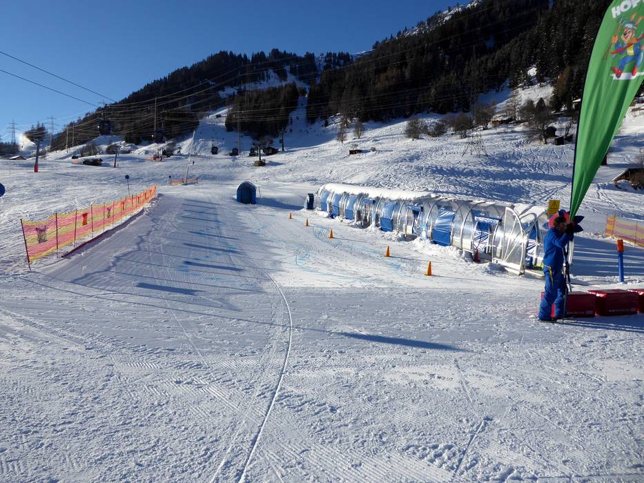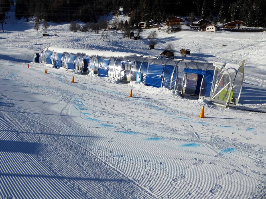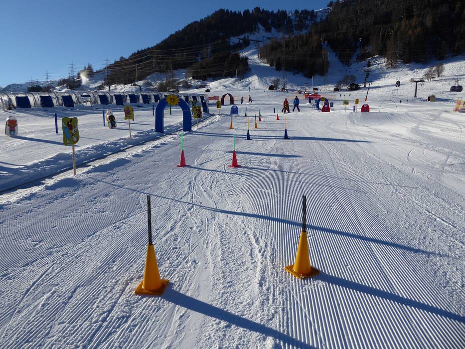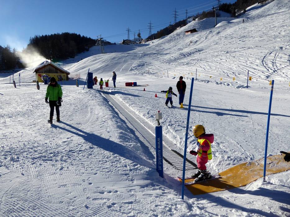 De skischool Stuben beheert een klein kinderland met een transportband aan de rand van Stuben.