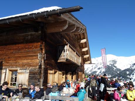 De Rud-Alpe is een authentieke en gezellige skihut met een uitstekende selectie aan eten en drinken. Bij mooi weer trekt het grote zonneterras veel bezoekers.
