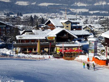 Après-ski (hutten, bars, sneeuwbars, cafés, feestzalen) St. Johann in Tirol/Oberndorf – Harschbichl In St. Johann in Tirol is het rustiger dan in Arlberg of Ischgl. Toch is het après-ski hier zeker de moeite waard. Ook op de Harschbichl op ongeveer 1600 m is er een Schirmbar. Bij de dalstations in St. Johann en Oberndorf kun je eveneens genieten van après-ski. Voor toerskiërs zijn sommige pistes zelfs tot in de late avond (niet verlicht) geopend.