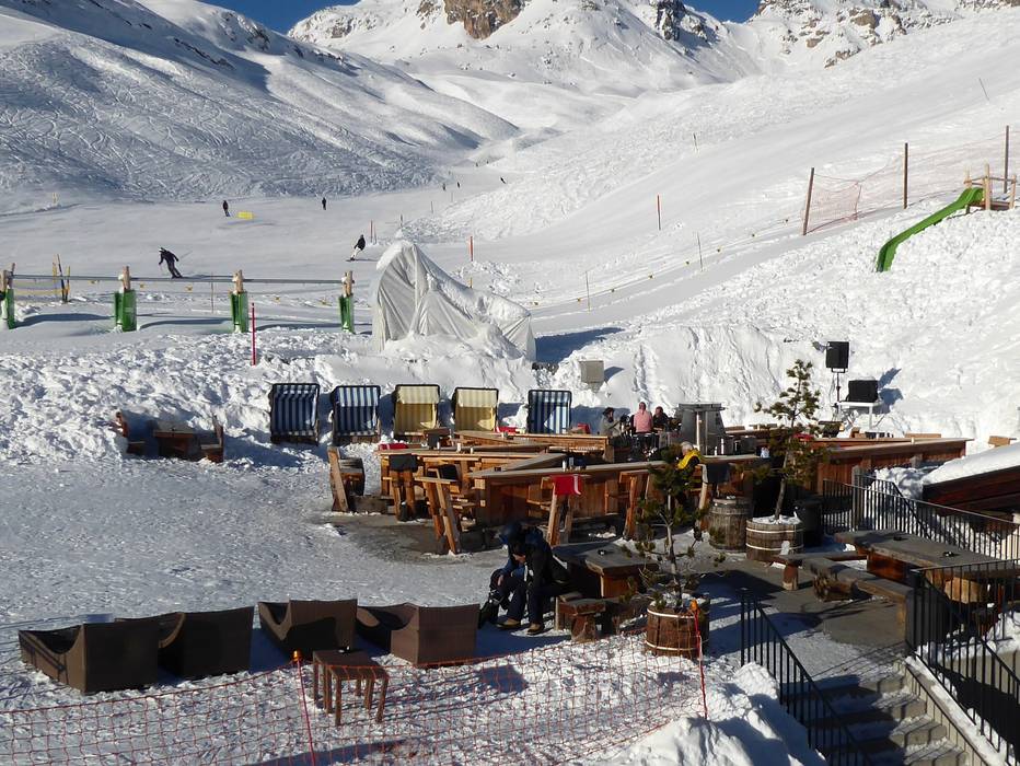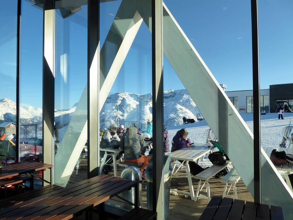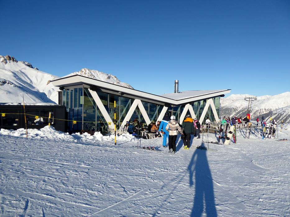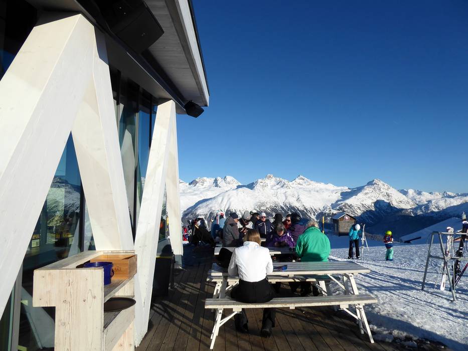 Bij de sneeuwbar van de Alpina Hütte of in de ligstoel in de zon kun je de skidag heerlijk afsluiten en genieten van het prachtige uitzicht op het Engadin. Je moet echter nog steeds om 16.00 uur naar het dal afdalen.