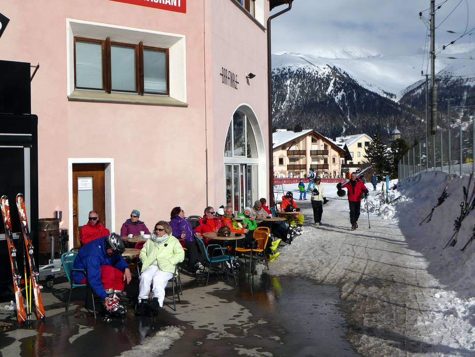 De kleine bar is het trefpunt na het skiën in Celerina.