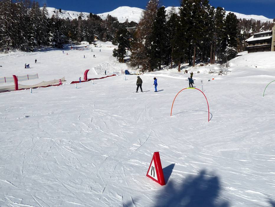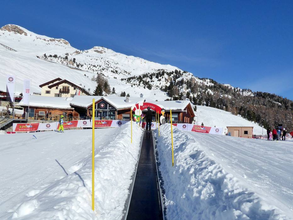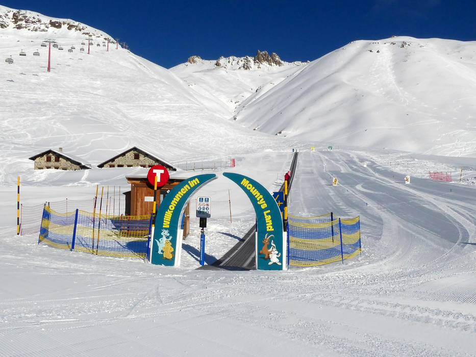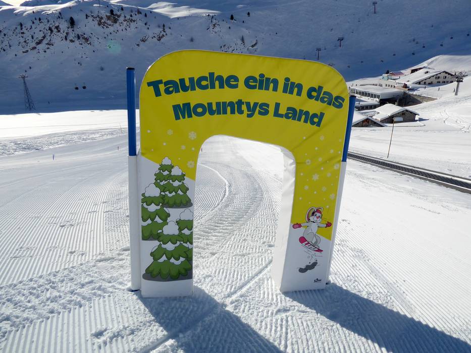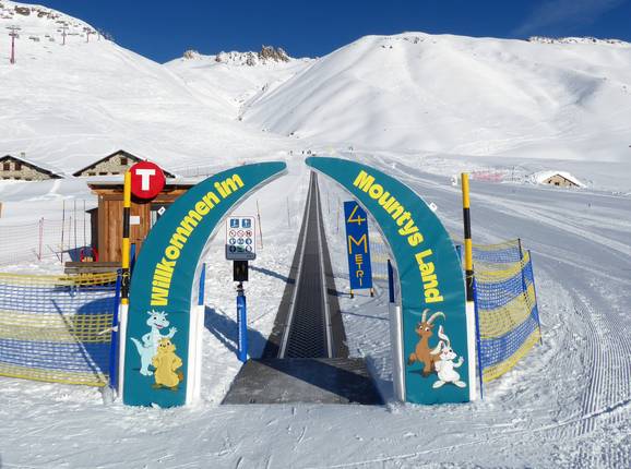 De beschermde Kids-Zone met eigen transportband bevindt zich bij het station Marguns. Hier kunnen de kleintjes in alle rust genieten van de grappige figuren van de Mountys en op speelse wijze kennismaken met de wintersport.