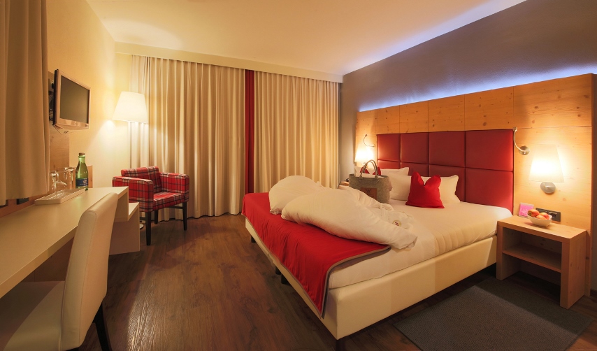 Het hotel combineert traditionele Tiroolse stijl met moderne elementen. Onze kamer was licht, schoon en prettig ingericht, met balkon en uitzicht op het omliggende berglandschap – geen show, maar heel sfeervol. Je merkt dat hier met zorg wordt gewerkt.