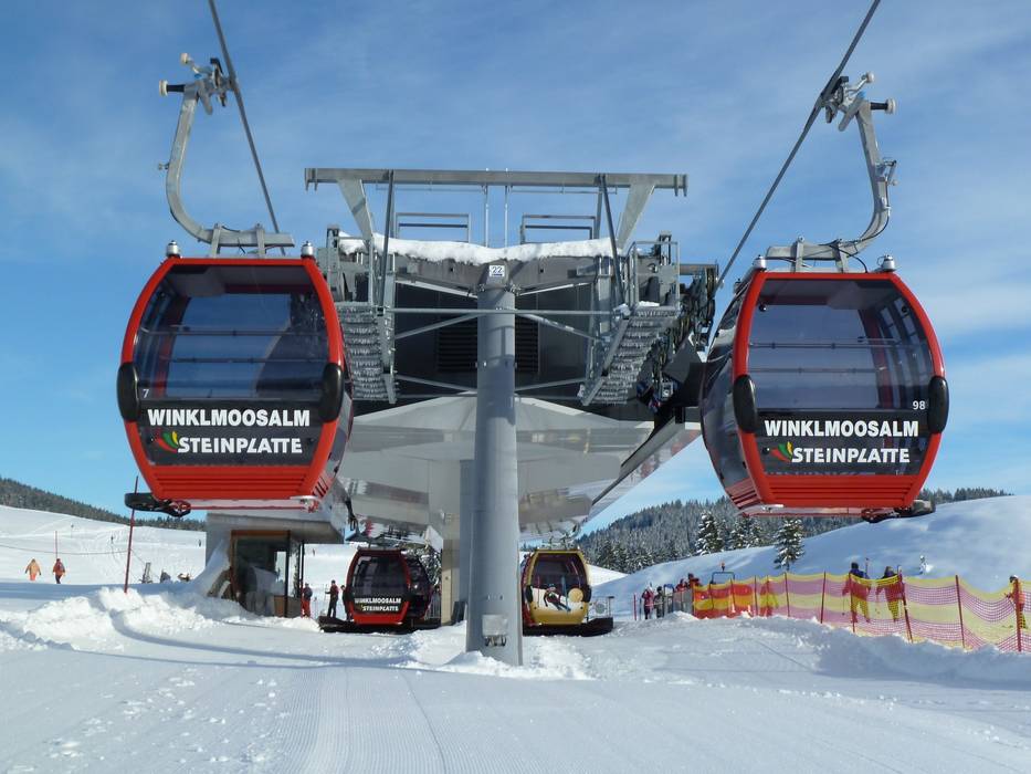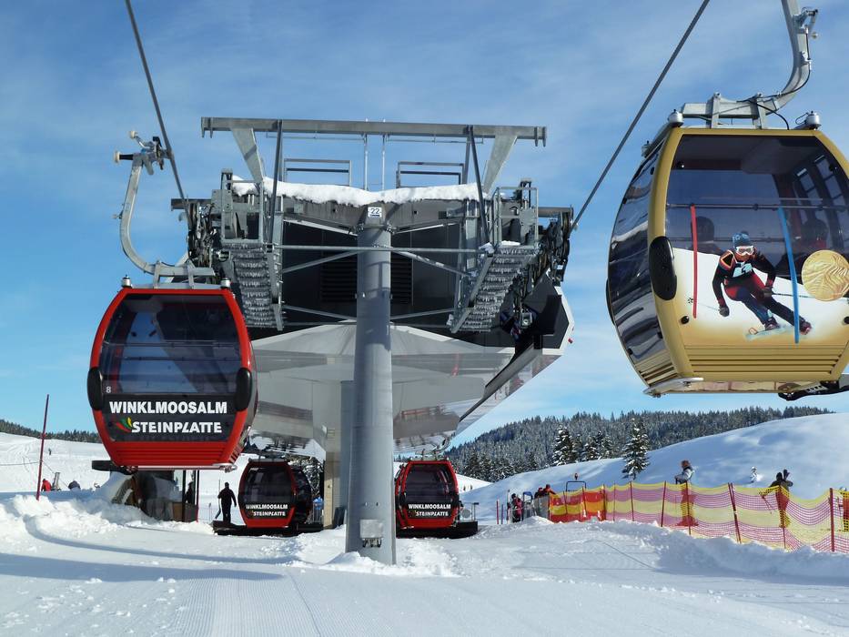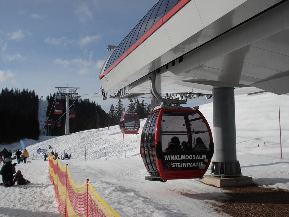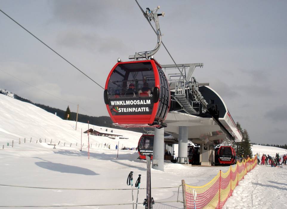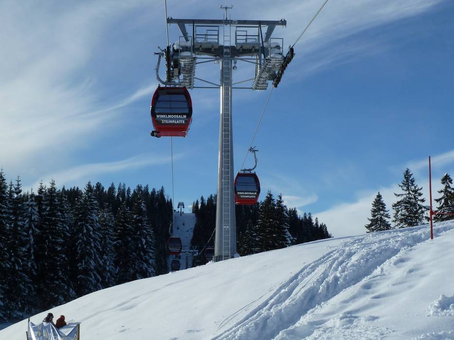 Kabelbaan/gondellift in het skigebied Steinplatte Winklmoosalm – Waidring/​Reit im Winkl