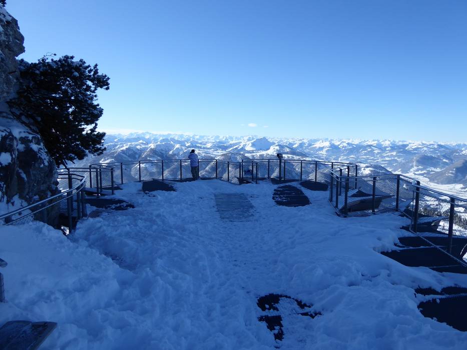 Het winterwandelpad naar het uitkijkplatform en de druipsteengrot is een belevenis voor het hele gezin. Het begint bij het bergstation van de gondelbaan Waidring-Steinplatte in het Triassic Park.