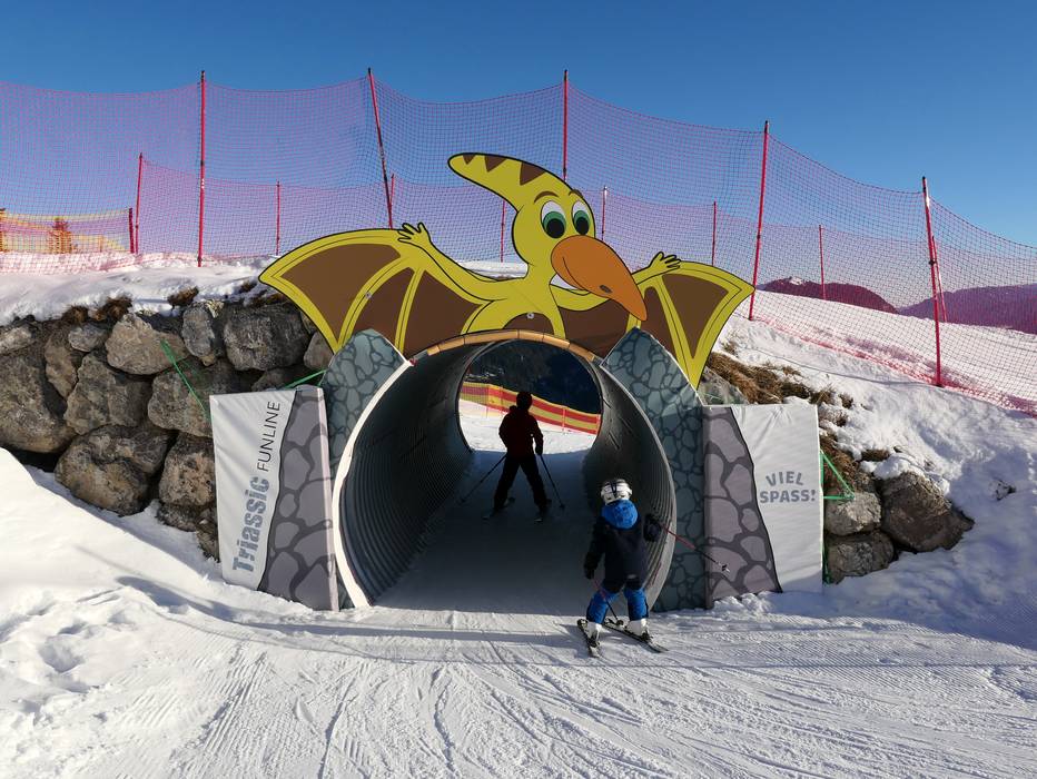 De Funline met dinosaurus ligt direct naast het Snowpark. De "funpiste" bestaat uit golvende banen, steile bochten, een sneeuwslak met tunnel en andere sneeuwelementen zoals kleine sprongen, slide-elementen en slalom. Plezier voor iedereen gegarandeerd!