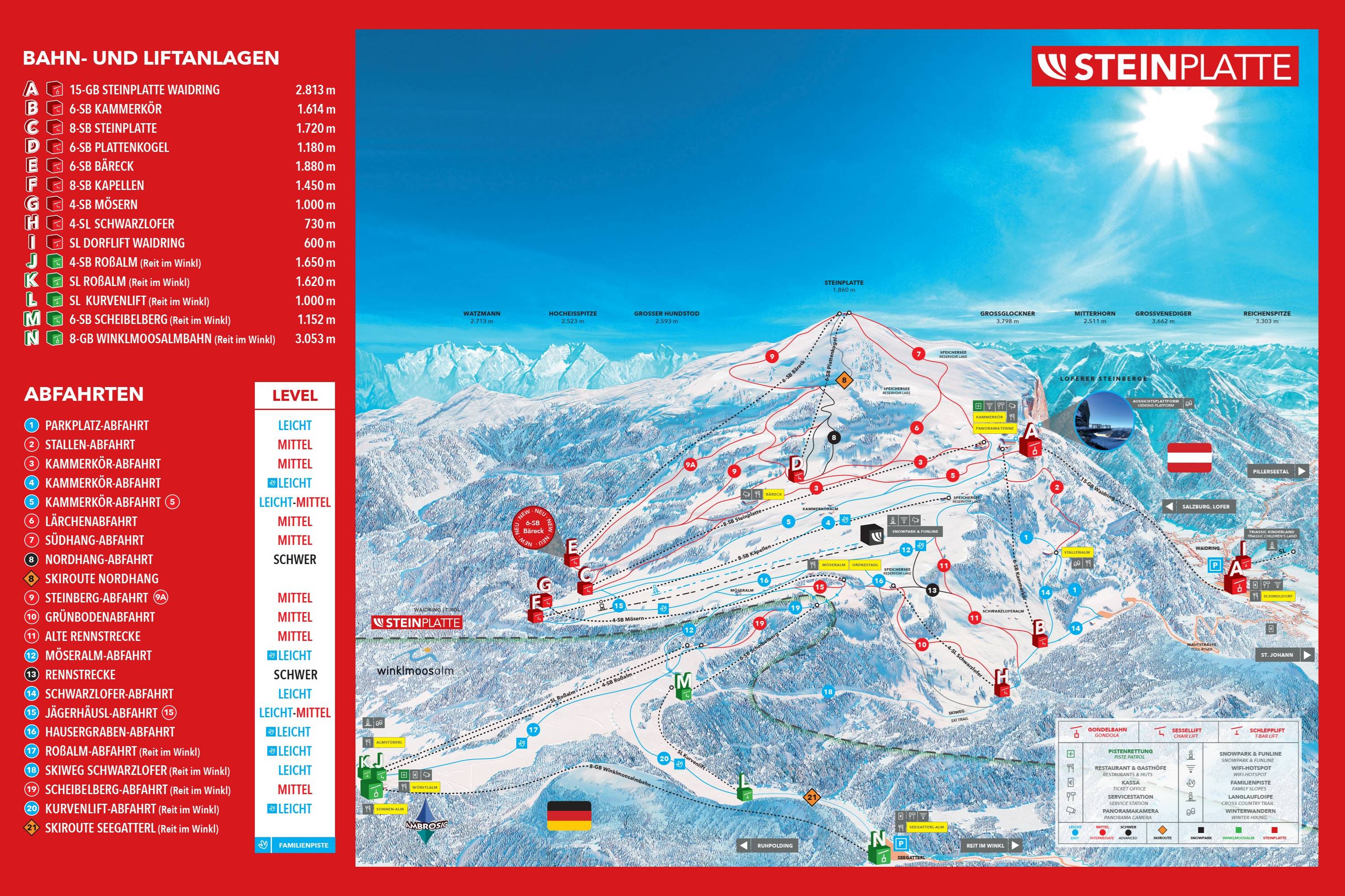 Oriëntatie (pistekaart, informatieborden, bewegwijzering piste) en veiligheid in het skigebied Steinplatte Winklmoosalm – Waidring/Reit im Winkl
