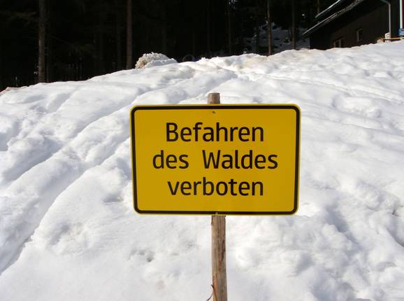 Borden geven aan dat het bos niet betreden mag worden en beschermd moet worden.