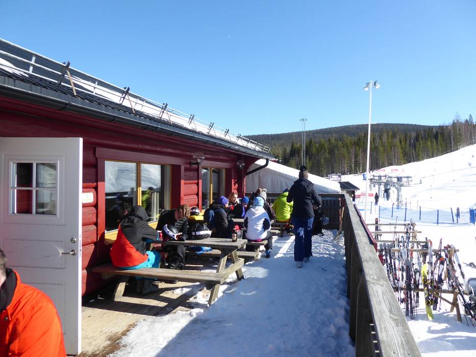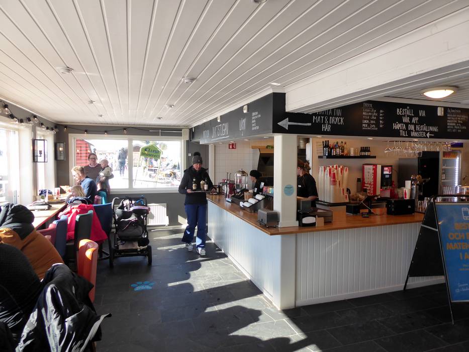 De Jaktstugan biedt alles voor een snelle lunch, waaronder hamburgers en worstjes. Koude en warme dranken maken het aanbod compleet. Bij mooi weer kun je op het balkon of het terras zitten.