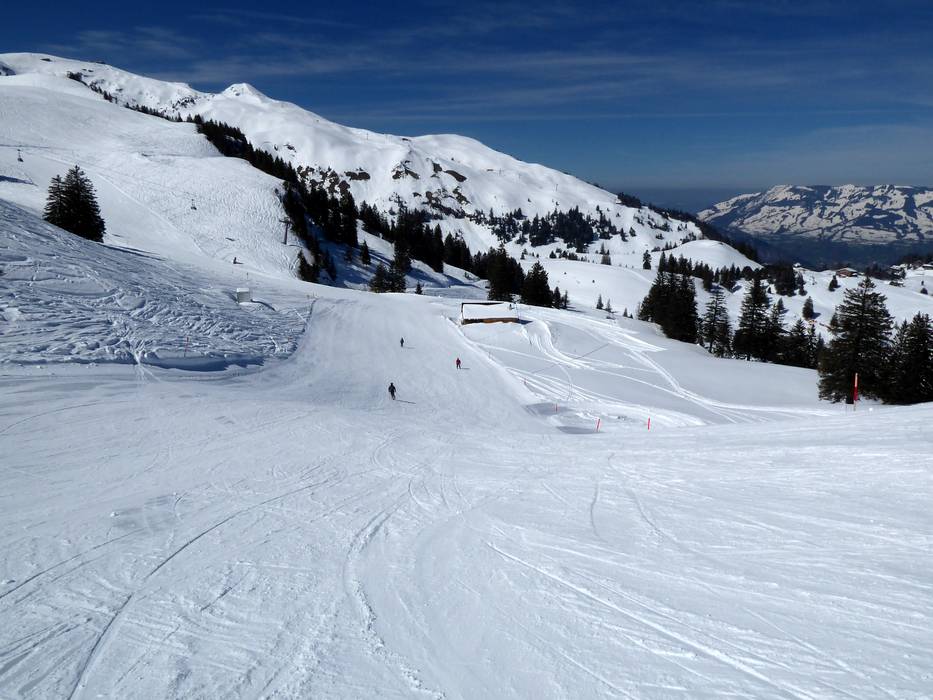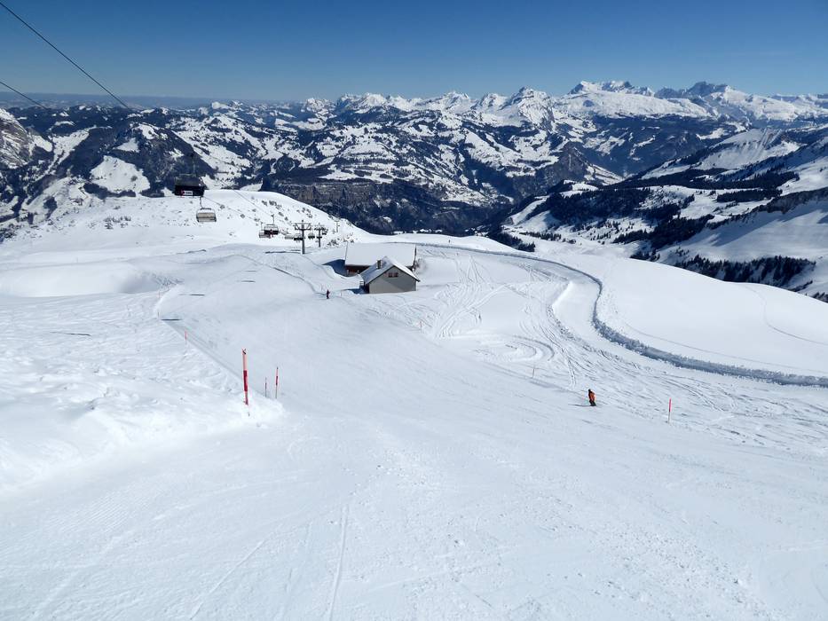 De afdalingen eindigen allemaal in Stoos. Er zijn geen pistes helemaal tot in het dal. Hier moet je de tandradbaan of de pendelbaan nemen.
