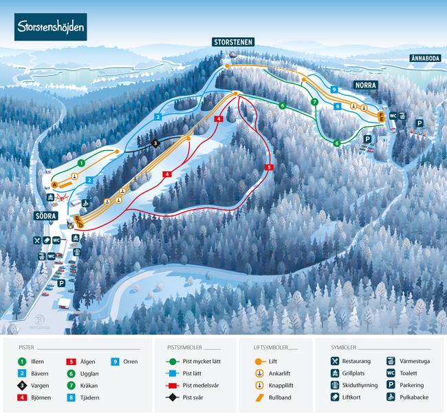 Kaart met route lift: C. Södra sidan Storstenshöjden