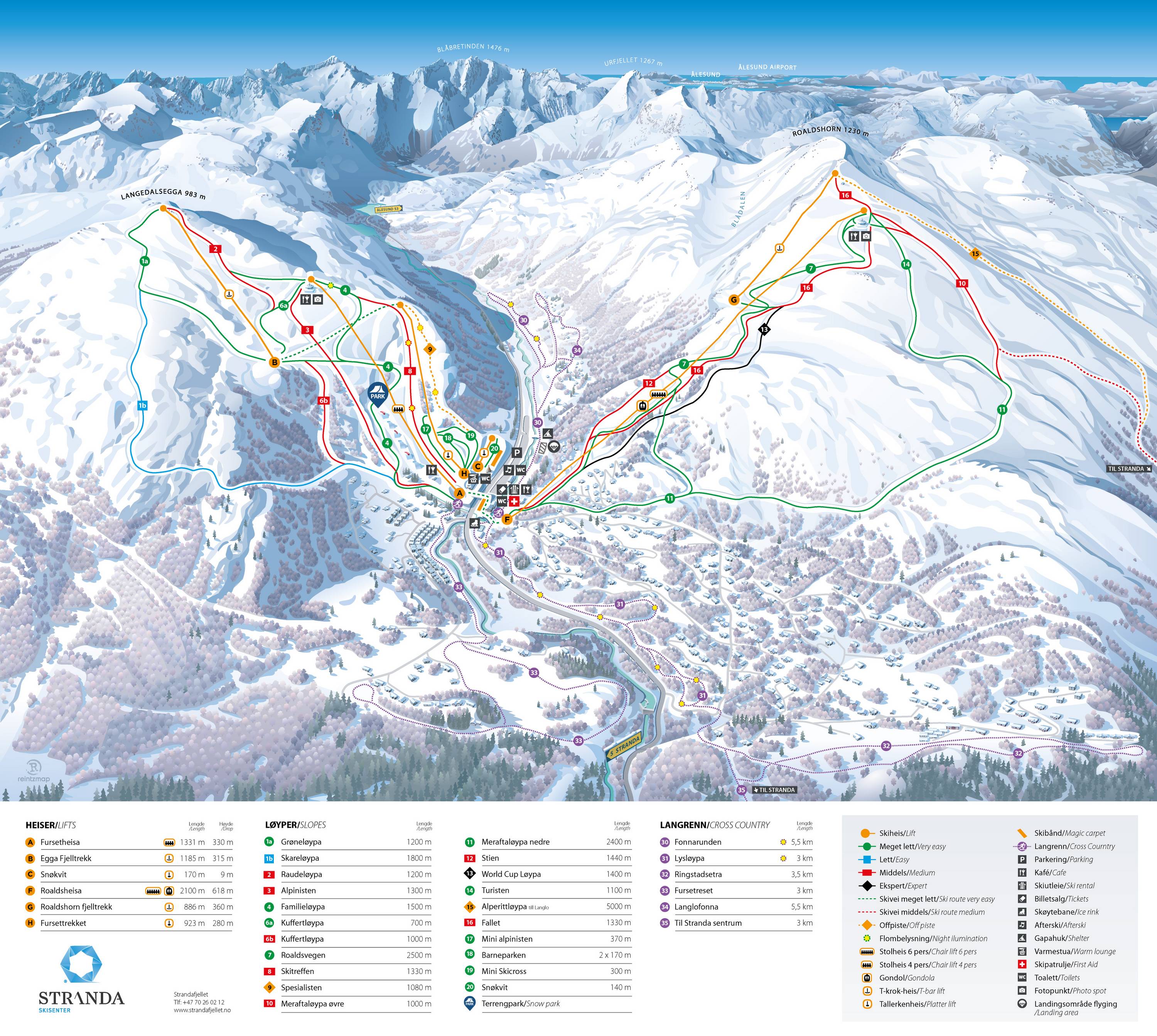 Strandafjellet (0,1 km), Stranda (7 km) Plaatsen bij het skigebied