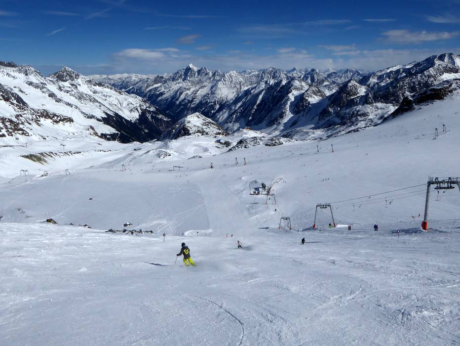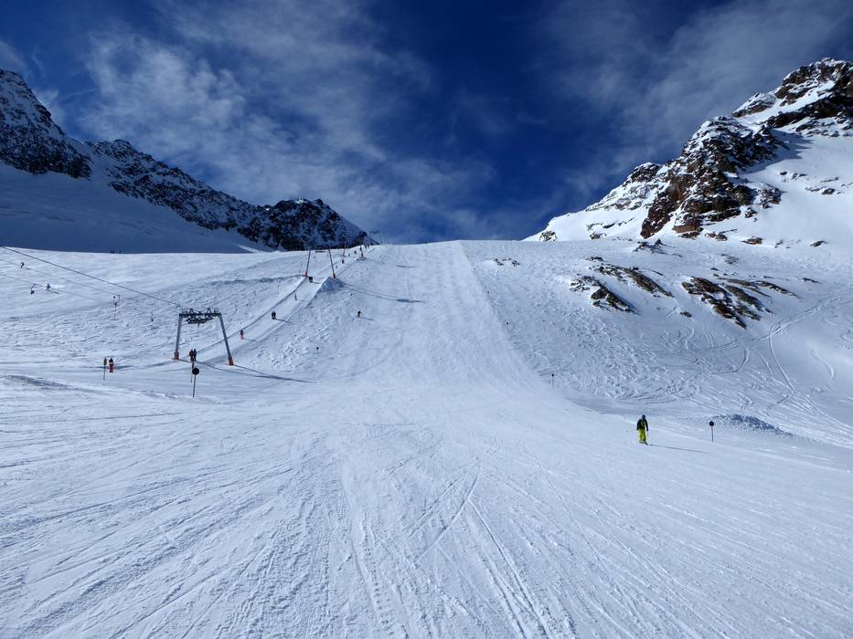 De Stubaier Gletscher biedt veel mooie en uitdagende skiroutes (die tot de moeilijke pistes behoren), zoals bijvoorbeeld Fernau-Mauer, Steile Zunge, Kanonenrohr en Bildstöckljoch. Naar het dal leiden met de Wilden Grub'n en Fernau twee skiroutes.