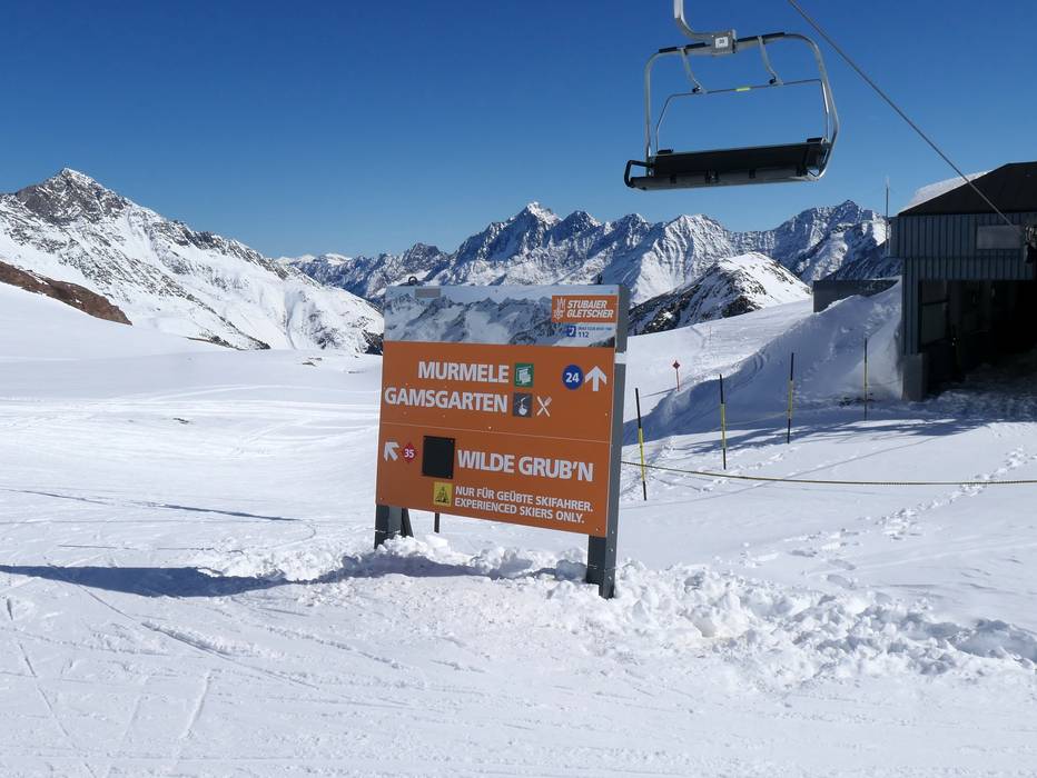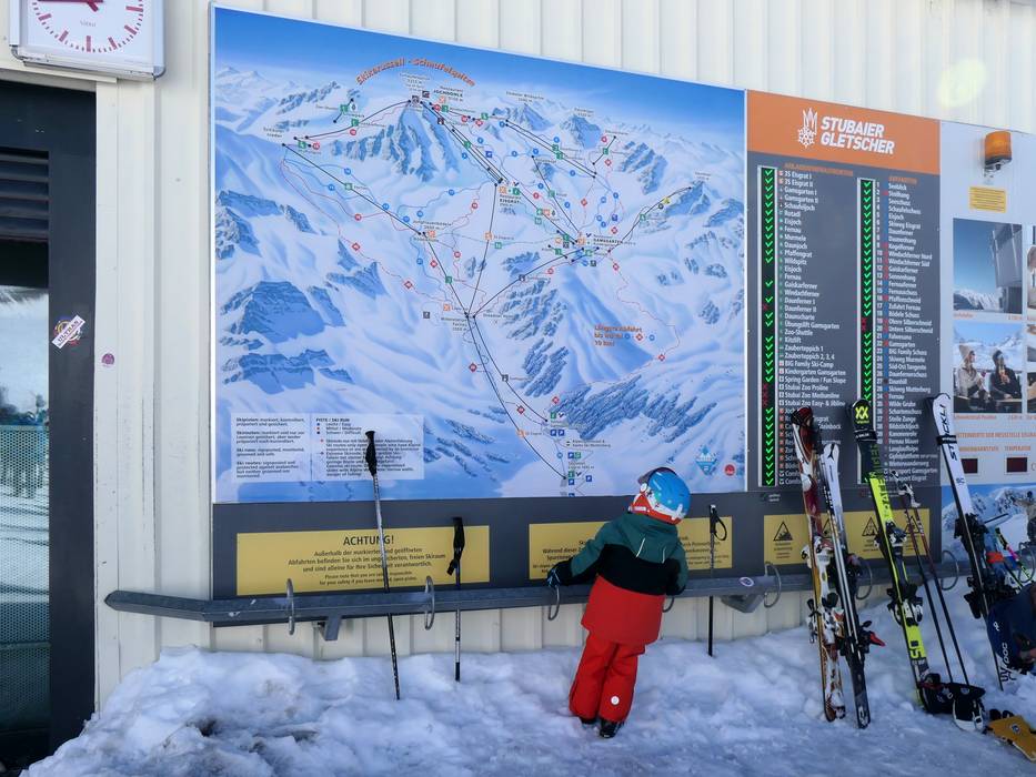 Oriëntatie (pistekaart, informatieborden, bewegwijzering piste) en veiligheid in het skigebied Stubaier Gletscher