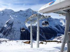 Pistes bij de Langenstein Het skigebied Sulden met (v.l.n.r.) Königspitze…