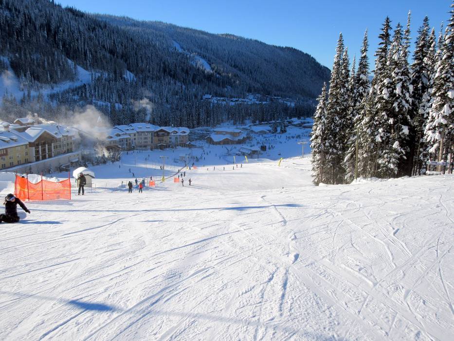 Een groot deel van de pistes leidt terug naar Sun Peaks Village.