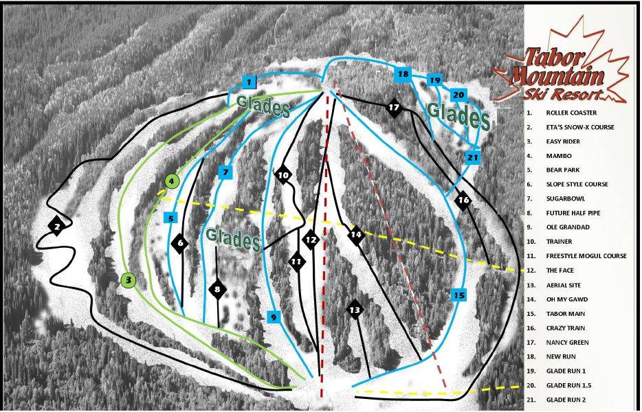 Pistekaart Tabor Mountain seizoen 2024/2025