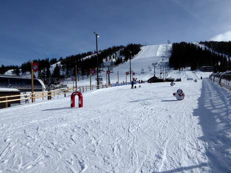 Direct naast het dalstation in Tandådalen is er een groot, afgebakend gebied voor families met kinderen. Transportbanden en sleepliften ontsluiten de lichte en brede helling. Grappige figuren maken het aanbod compleet.