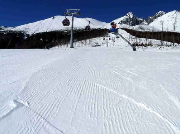 De pistes in Tatranská Lomnica worden dagelijks met veel aandacht voor detail vers geprepareerd. Ook na een drukbezochte dag verkeren de pistes in de late namiddag nog in zeer goede staat.