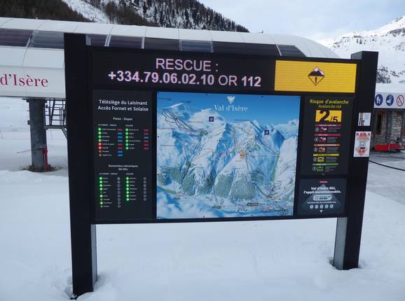 Oriëntatie (pistekaart, informatieborden, bewegwijzering piste) en veiligheid in het skigebied Tignes/Val d'Isère