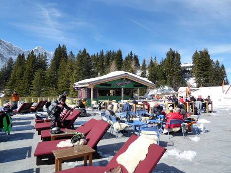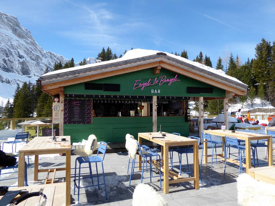 Op het zonneterras bij de Trübsee kun je de skidag perfect afsluiten bij de Engel & Bengel Bar. In het weekend spelen er bands of draait er een DJ. De ideale plek voor après-ski voordat je terug naar het dal skiet.