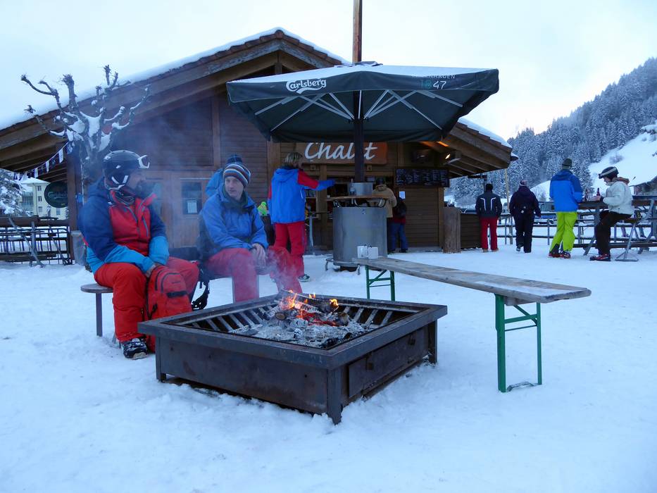 Aan het einde van een geslaagde skidag kun je in het dal genieten van après-ski. Het chalet biedt goede muziek en een gezellige sfeer. Bij het knisperende vuur kun je je opwarmen.