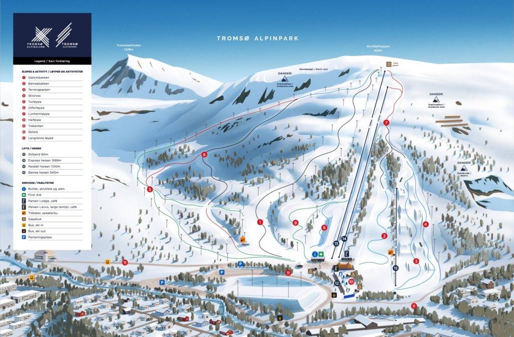 Kroken (1,7 km), Tromsø (9 km) Plaatsen bij het skigebied