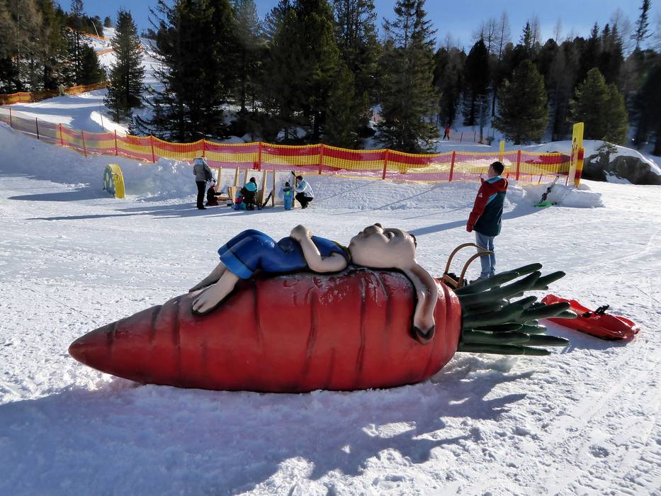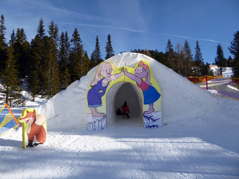 Op de Kidsslope bij de Wildkopflift hebben kinderen veel plezier. Samen met dierlijke begeleiders gaan ze door een sneeuwtunnel, steile bochten en golven.
