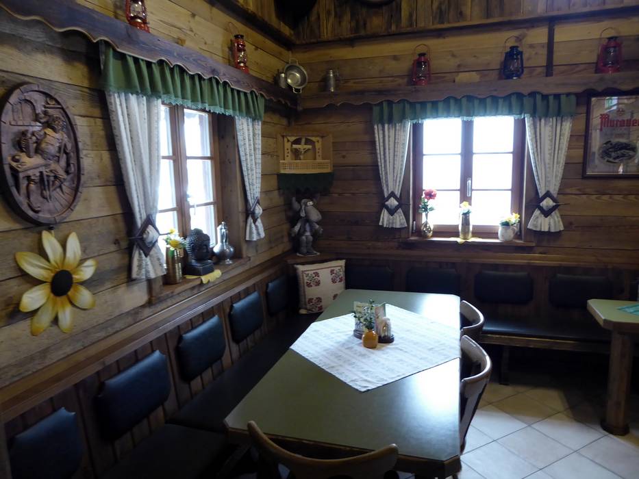 Gezellige hut met tegelkachel en als specialiteit is er zirbenschnaps.