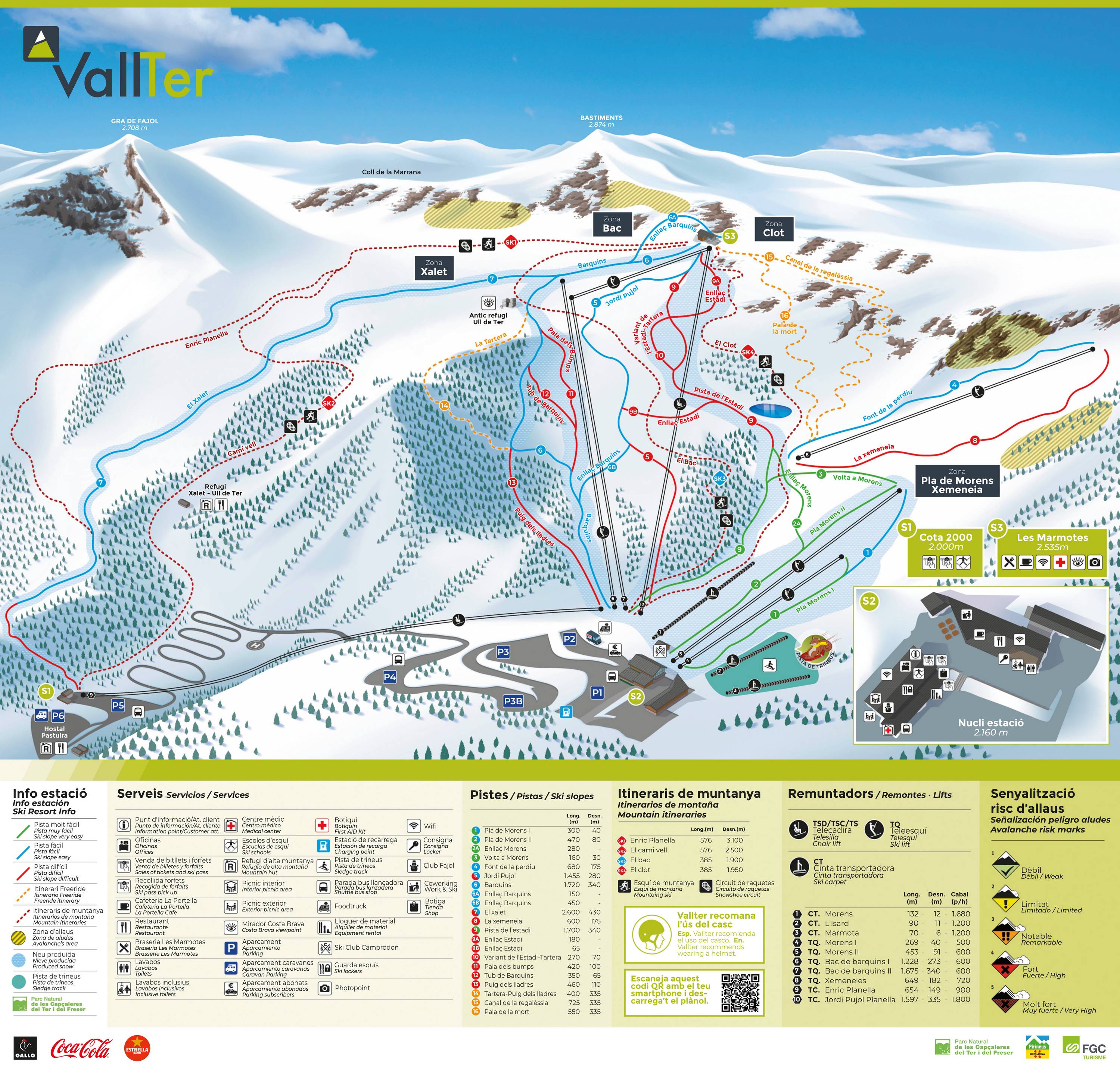 Pistekaart van het skigebied Vallter 2000
