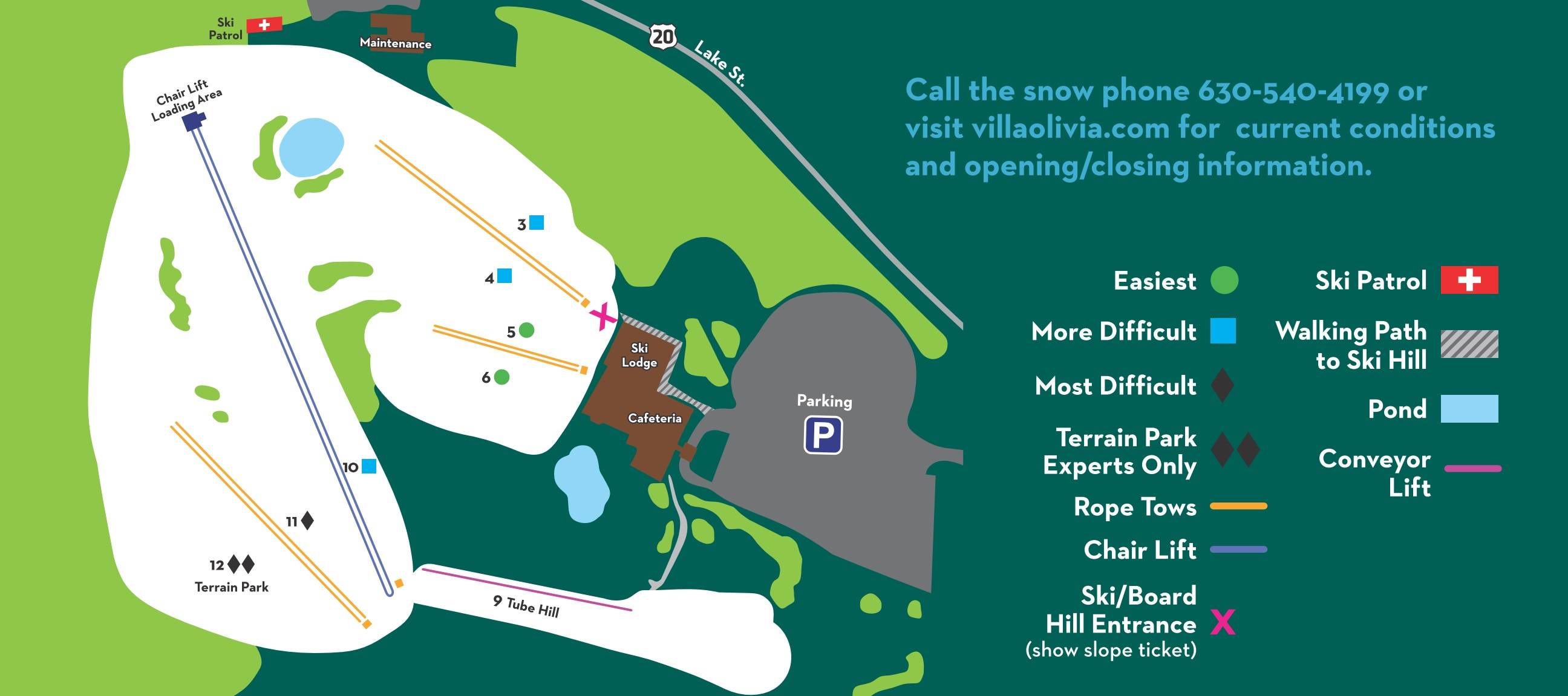 Pistekaart van het skigebied Villa Olivia – Bartlett