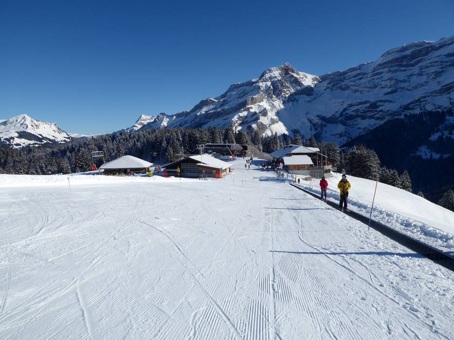 Bij het dalstation in Les Diablerets op ongeveer 1200 m runt de Ecole Suisse de Ski & Snowboard Les Diablerets een geweldig kinderland met een transportband en meerdere sleepliften.