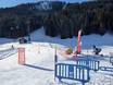Midden in Villars is er een volledig gratis oefenterrein met meerdere transportbanden. Hier kunnen kinderen en beginners in alle rust hun eerste bochten oefenen.