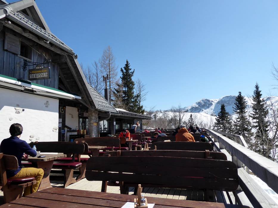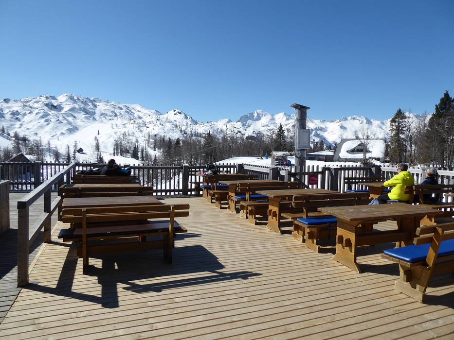 De hoogste hut in het skigebied van Vogel biedt een groot zonneterras en gezellige, rustieke stube. Er worden typische Sloveense gerechten geserveerd.