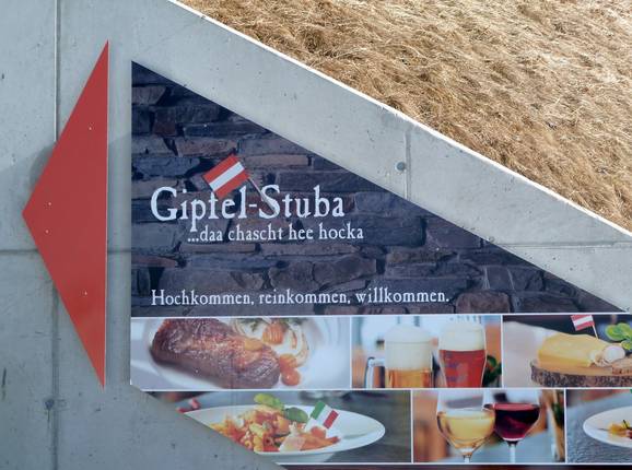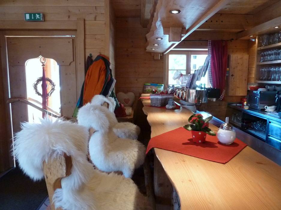 Restaurant met bediening en zonneterras bij het bergstation met gevarieerde Walser specialiteiten.