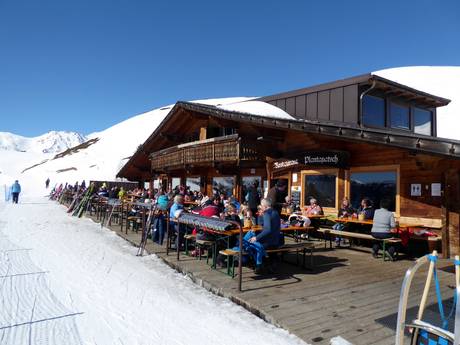 De Plantapatschhütte ligt zeer zonnig midden in het skigebied Watles. Het grote zonneterras met uitzicht op de Vinschgau nodigt uit om te blijven hangen. Op koude dagen kun je in de hut terecht. Er worden regionale specialiteiten geserveerd.