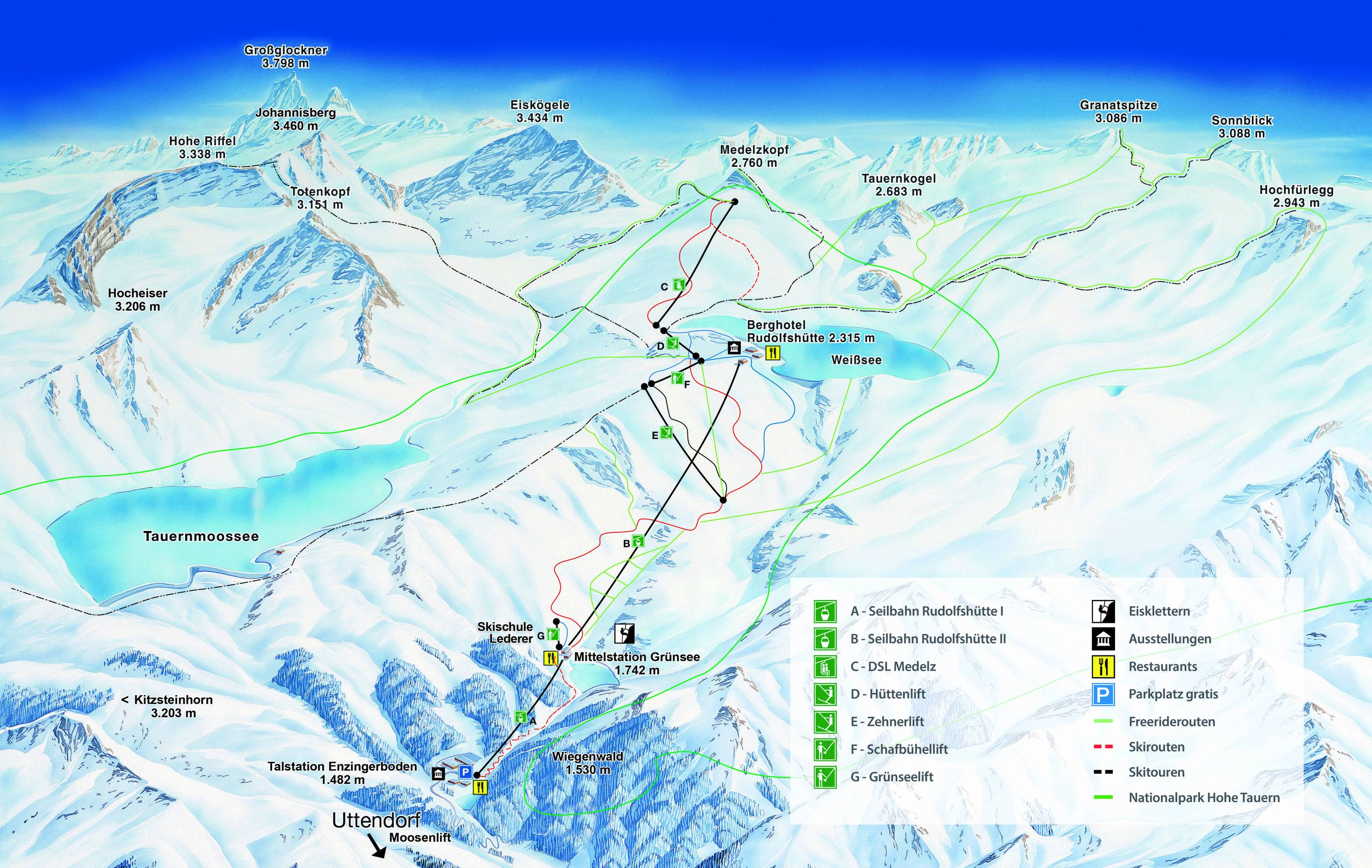 Pistekaart Weißsee Gletscherwelt – Uttendorf seizoen 2025/2026