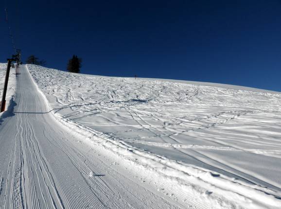 Een kort steil stuk op de dalafdaling en af en toe de mogelijkheid om de diepsneeuw in te gaan, maken de experts blij. Het aanbod is echter beperkt.